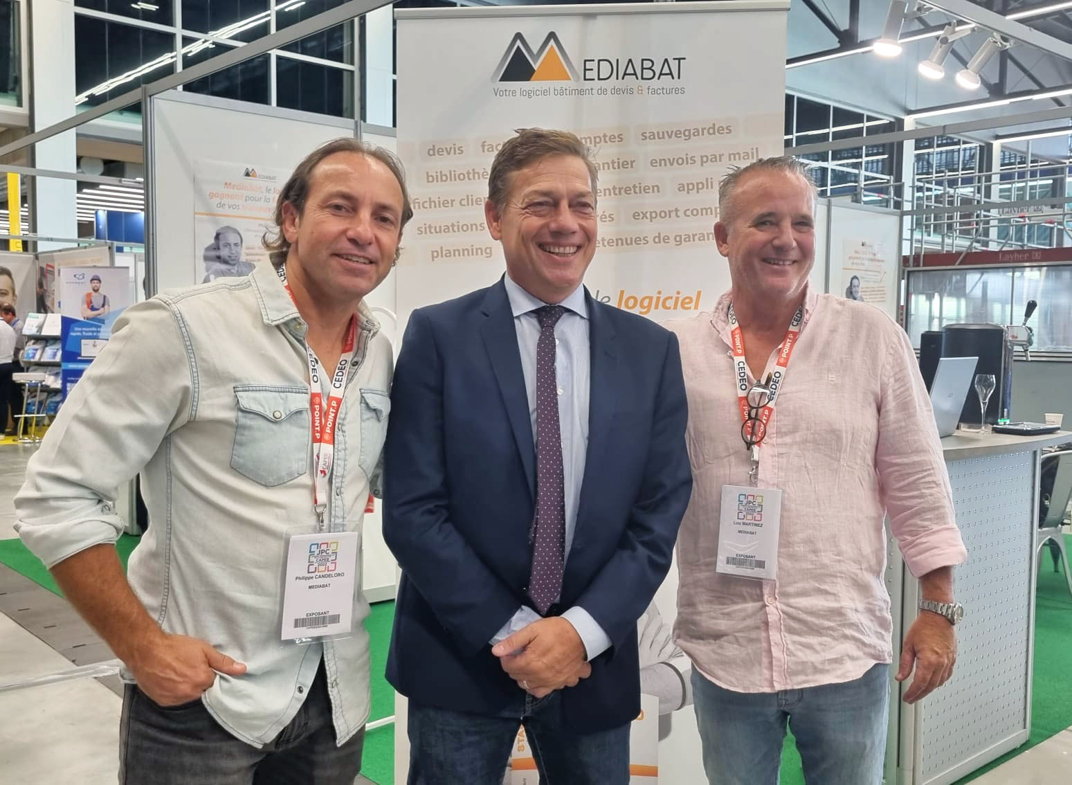Vous avez été très nombreux à venir au salon annuel des Journées Professionnelles de la Construction organisé par la CAPEB le 22 et 23 Septembre 2022 dernier au MEETT, le Centre de Conventions de Toulouse. L’équipe Mediabat et son ambassadeur Philippe Candeloro vous remercient pour votre intérêt et pour avoir contribué à la réussite de l’évènement.