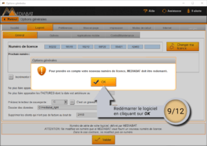 Une fenêtre s’ouvre vous informant que le logiciel doit être redémarré pour que la nouvelle licence soit prise en compte. Pour cela, cliquer sur le bouton OK (9/12)