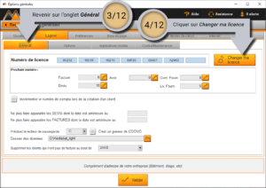 Cliquer sur l’onglet « Général » (3/12) et cliquer sur « Changer ma licence »(4/12).