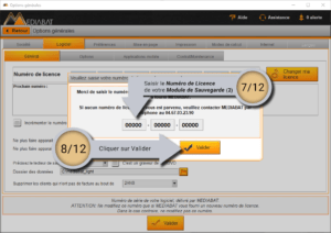 Saisir le numéro de licence du module de sauvegarde (2) (7/12) présent dans le mail reçu (composé de 15 chiffres).